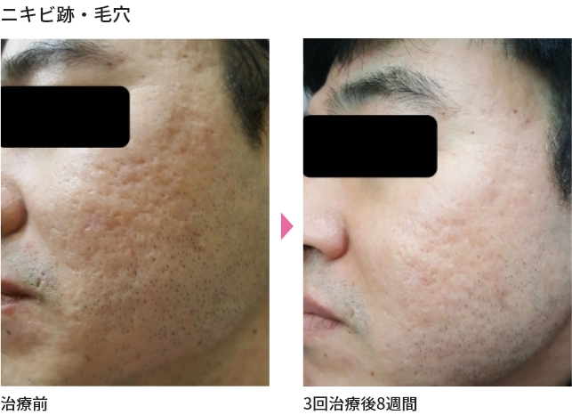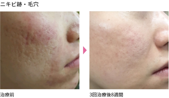 内容:ニキビ跡の凹み・クレーター・毛穴の開き・肌のハリ・シワ・タルミ・肌の若返り