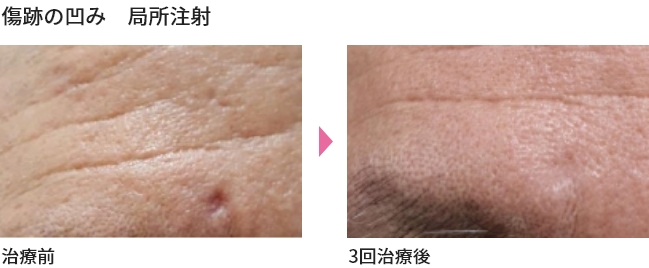 部分的なニキビ跡や傷跡の凹みに直接注入できます。