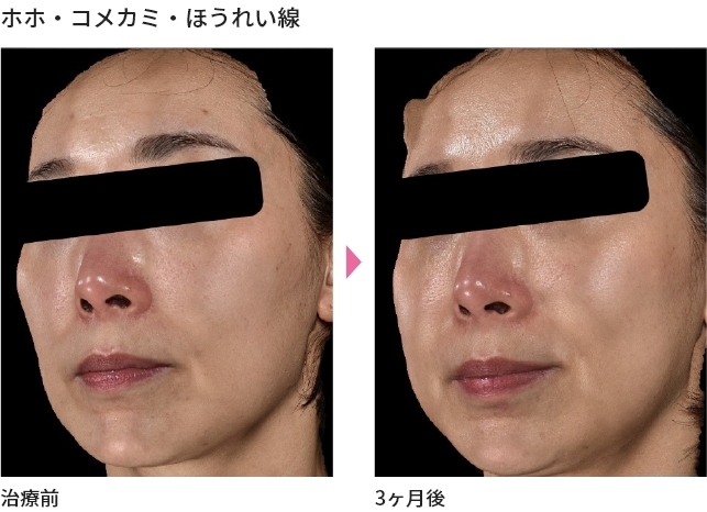 ほうれい線・マリオネットライン・ゴルゴ線・首などの深いシワや、おでこ・コメカミ・ホホなどの凹みのボリューム改善に適しています。