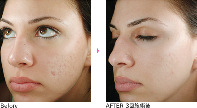 より高いパワーで治療することで、少ないダウンタイムでニキビ跡や毛穴の開きの凹凸も改善。